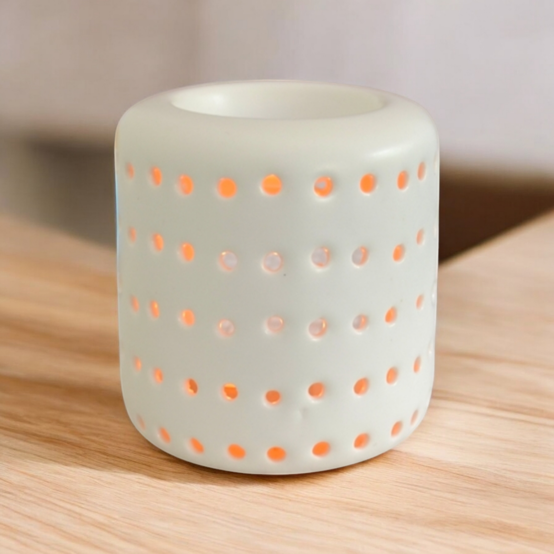 L’ouverture en haut est suffisamment grande et permet d’accueillir la cire parfumée (cire fondante).