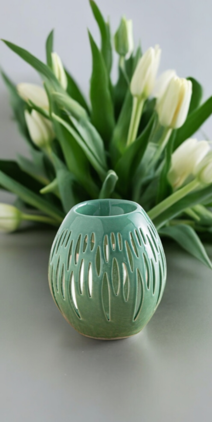 Ses ouvertures, finement travaillées à la main, laissent s'échapper une douce lueur de bougie, accompagnée de la diffusion des parfums, créant ainsi une ambiance chaleureuse et délicieusement parfumée.